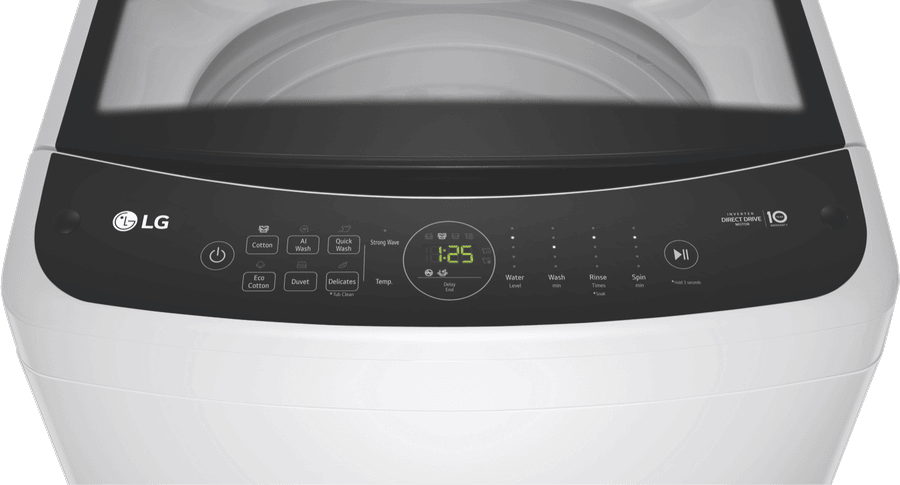 The LG 9kg Top Load Washer offers a spacious washing capacity ideal for larger households. This white top load washing machine features an inverter direct drive motor for reliable performance and energy efficiency, earning it a 4-star energy rating. With a 3-star WELS water rating and 132 litres of water usage per wash on the Eco Cotton setting, this washer helps conserve water. Choose from 7 washing programs including AI Wash, Cotton, Eco Cotton, Quick Wash, Duvet, Delicates and Allergy Care to tackle any laundry load. Customise each cycle with 3 temperatures, 10 water levels, 5 rinse options and 5 spin levels up to 800rpm. Additional options like Soak, Delay Start and Pre Wash provide added convenience. The stainless steel drum ensures durability while the Safety Lock keeps little hands safe. Smart Diagnosis helps troubleshoot any issues. Measuring 632mm wide, 1333mm high and 670mm deep, this top loader fits well in most laundry spaces. The manufacturer’s part number for this product is WTL3-09W. Experience the cleaning power and convenience of the LG 9kg Top Load Washer, backed by a 2 year manufacturer’s warranty.