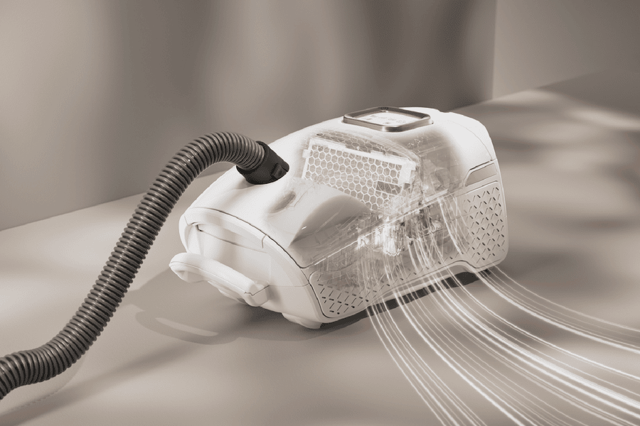 Our Miele Guard vacuum cleaners offer the ideal combination of maximum suction power and unlimited running time – perfect for large areas. With a powerful fan, optimised airways and matching floorheads, they ensure particularly thorough cleaning. The new vacuum cleaner bag system with ComfortFit, combined with the powerful exhaust filters, delivers first-class performance and hygiene – so you can benefit from reliable, powerful cleaning. With our innovative filter technology and matching vacuum cleaner bags, you can enjoy all-round hygiene in your home – with a filter performance of 99.99%(1). The ComfortFit system makes it particularly easy to insert vacuum cleaner bags, while the secure closure ensures that no dust escapes and that the bag can be changed in a particularly hygienic manner. Furthermore, the new vacuum cleaner bags are made of more than 80% PCR. The HyClean Pure TU vacuum cleaner bags, which are compatible with the Guard L1 model series, are perfectly tailored to the appliance in question and offer outstanding performance and efficiency. The automatic ComfortFit lock system ensures a tight connection between the vacuum cleaner bag and appliance and is responsible for keeping the dust safely sealed inside – protecting the vacuum cleaner and guaranteeing maximum filtration. Durable: tested for the equivalent of 20 years(2) use