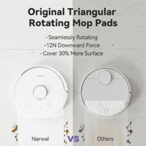 The Narwal Freo Robot Vacuum and Mop makes cleaning your home a breeze. This smart little helper tackles both hard floors and carpets with ease, using its powerful 3000 Pa suction to pick up dirt and debris. It’s great for pet owners too, with a HEPA filter to trap allergens. The Freo uses laser sensors to navigate your space and can even detect areas you want it to avoid. When it’s done vacuuming, it switches to mopping mode for a thorough clean. With a noise level of just 46 decibels, it won’t disturb your peace and quiet. The robot connects to your smart home setup for easy control. When it’s finished, it returns to its base station to empty and charge. The Narwal Freo (YJCC012) comes with a 2-year warranty for peace of mind.