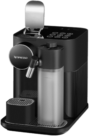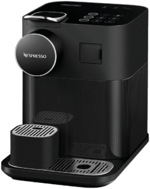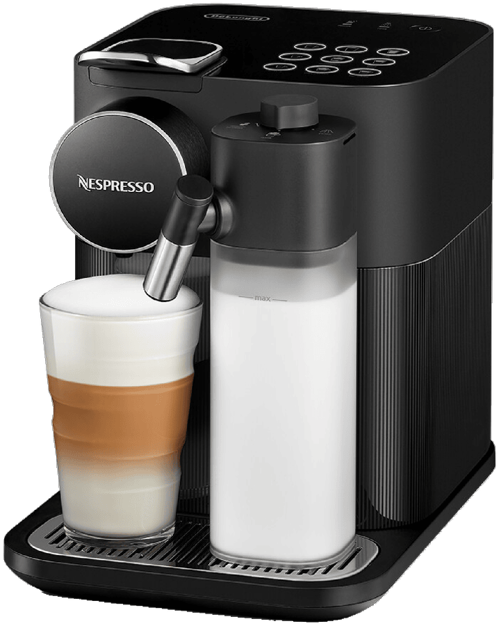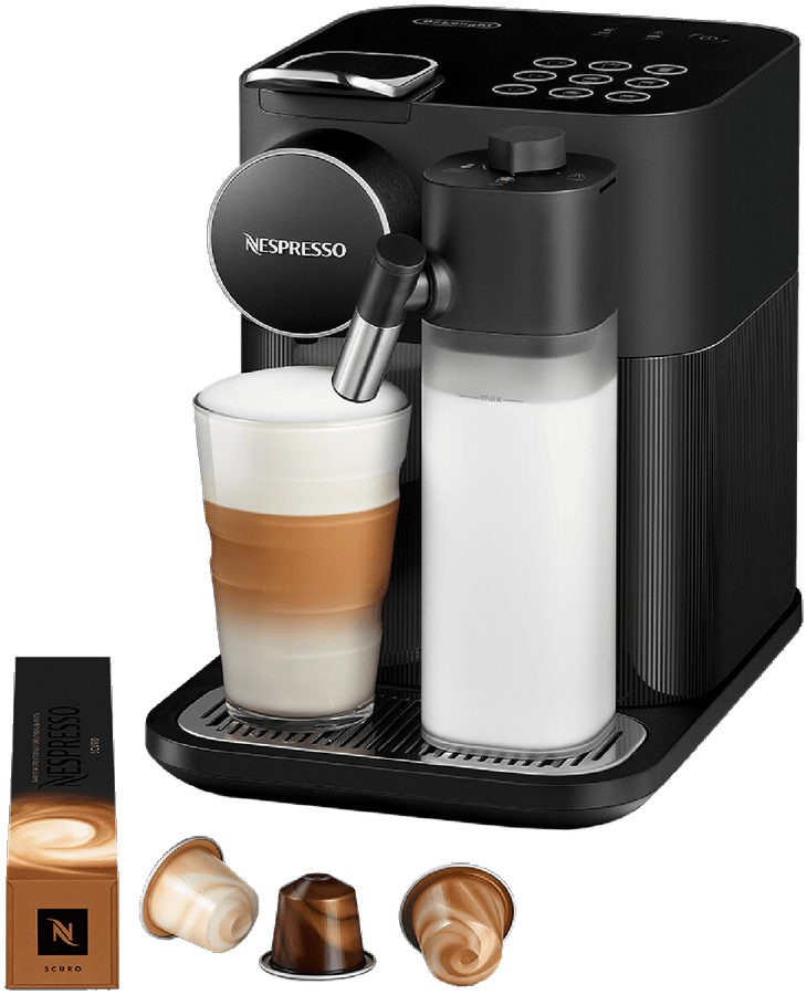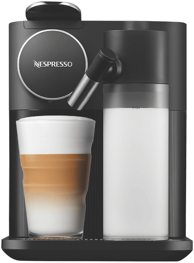 Experience barista-quality coffee at home with the Nespresso Gran Lattissima Black Automatic Capsule Coffee Machine. This sleek capsule coffee machine delivers café-style beverages in an instant with just the touch of a button. Choose from 9 one touch recipes like espresso, ristretto, lungo or 6 milk options including cappuccino and latte macchiato. The 19 bar pump extracts maximum flavour from each Nespresso capsule, while the integrated milk frother whips up a silky smooth crema. With rapid 25 second heat up, this smart coffee maker gets your morning pick-me-up ready in moments. The generous 1.3L water tank minimises refilling, and auto shut off preserves energy after 9 minutes of inactivity. Crafted from durable plastic with a compact footprint, this Nespresso coffee machine looks stunning on kitchen counters. Experience the ultimate convenience of delicious coffee house beverages from the comfort of home with the Nespresso Gran Lattissima. The manufacturer’s part number for this product is EN640B.