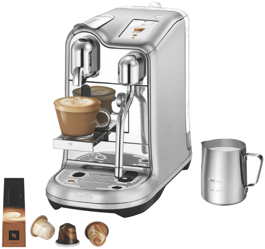 Kickstart your day with this Breville the Creatista Pro Capsule Coffee Machine BNE900BSS offering the convenience of capsule coffee with precise milk texturing for cafe quality coffee at home. With fast three second heat up, simultaneous coffee extraction and customisable milk texturing, you can have two cappuccinos ready to enjoy in just 75 seconds; so you and your loved ones can get caffeinated in no time. Plus, the simple touchscreen operating system has intuitive technology with eight pre-set drinks and customisable drink settings for quick access to your favourite beverages. With a dedicated hot water spout for long black, this Breville coffee machine offers a wide range of options suitable for all coffee lovers.
