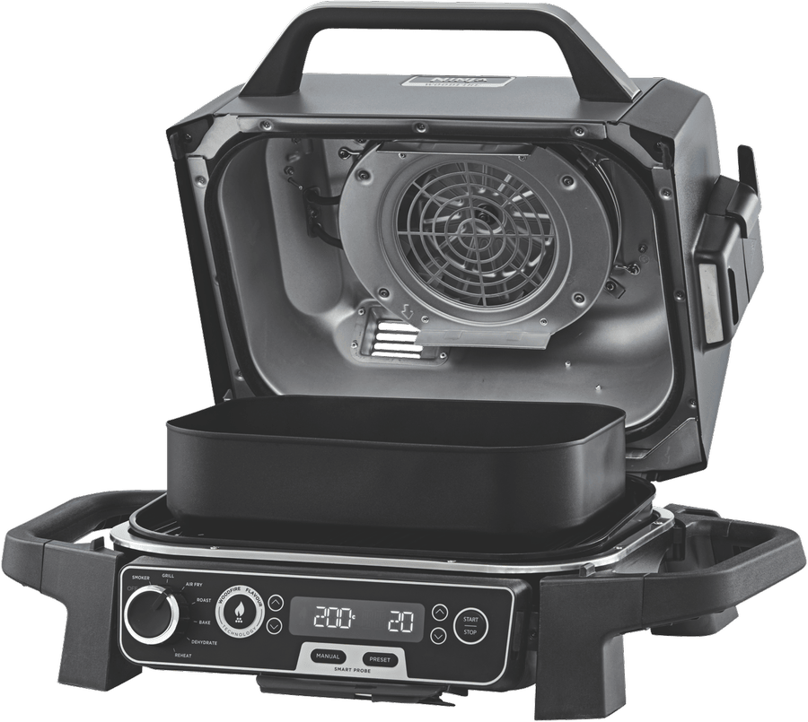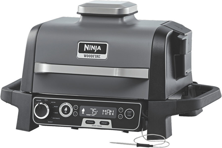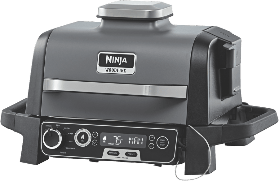 The Ninja Woodfire Electric BBQ Grill and Smoker simplifies outdoor cooking by merging the authentic taste of woodfire BBQ with electric convenience. Its Woodfire technology heats food quickly—just add half a cup of wood pellets to the smoker box for smoky flavour in steaks, chops, and veggies. With seven cooking programs—Grill, Smoke, Air Fry, Bake, Roast, Dehydrate, and Reheat—it offers versatility for various dishes. The 472mm x 338mm cooking surface fits large portions, and the Crisper Basket is perfect for healthy fries and wings. This appliance allows for indoor grilling, providing woodfire tastes year-round. The touch button control panel, integrated timer, and temperature probe ensure perfect cooking results, while the removable grease tray makes cleaning easy. Lightweight at 13.9kg and with a 1760 watt output, it’s portable for camping or friends’ BBQs. The Ninja Woodfire Electric Grill promises woodfire flavour anytime and comes with a 2 year warranty.