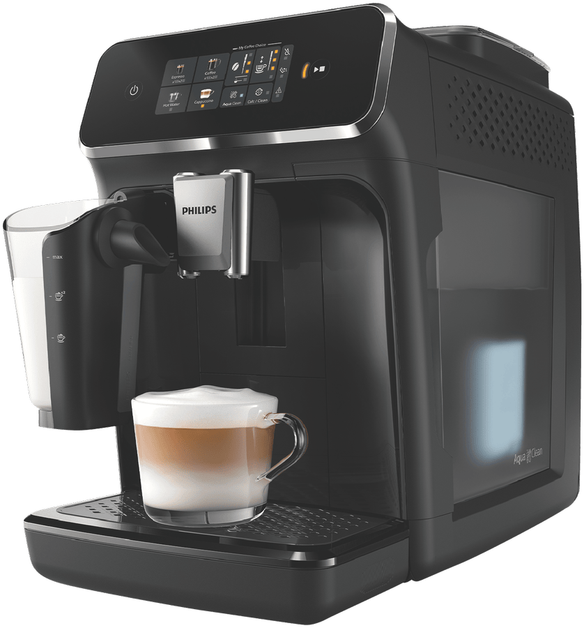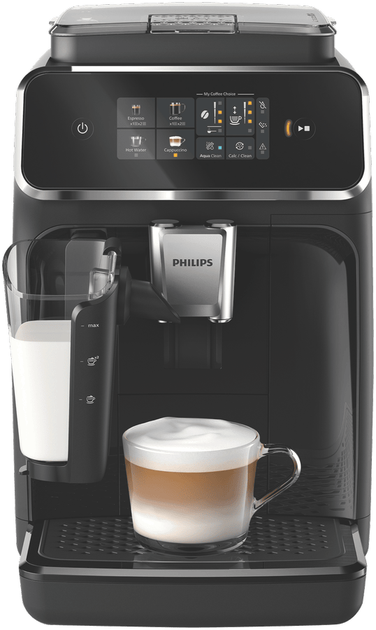Make barista coffee at home with this Philips 2300 Series LatteGo Fully Automatic Espresso Machine. Its powerful 15 bar pump pressure extracts rich flavour from your favourite beans, which are ground fresh in the built-in grinder with 12 different settings to suit your taste. The LatteGo system creates silky smooth froth with various milk types, perfect for crafting your favourite milk-based beverages. With a generous 1.8L water tank and 275g bean capacity, you can enjoy multiple cups before refilling. Comes with a 2-year warranty. Model EP2331/30.