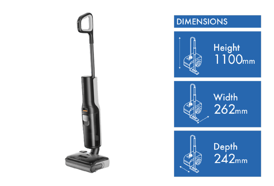 - Wet and dry cleaning, zero-tangle roller, slim design