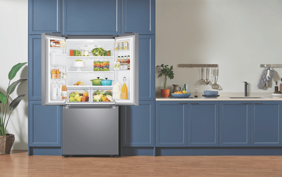 - French doors, Twin Cooling Plus, big crispers, LED lighting