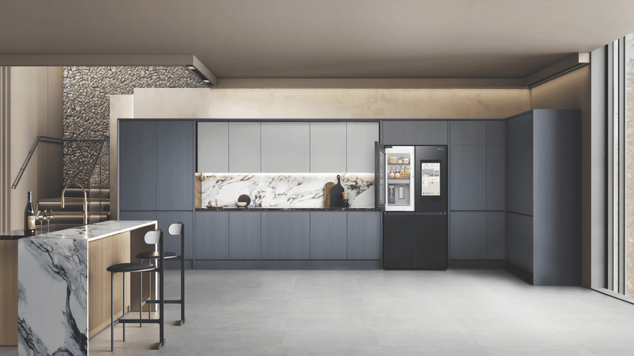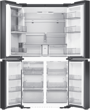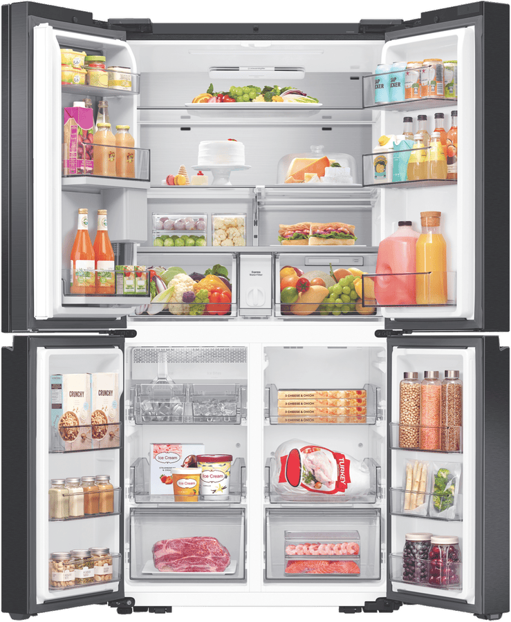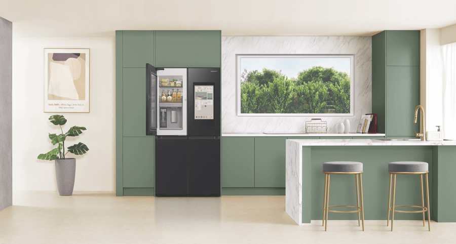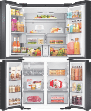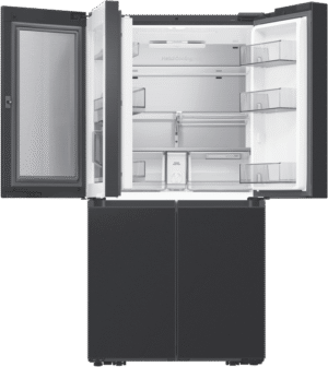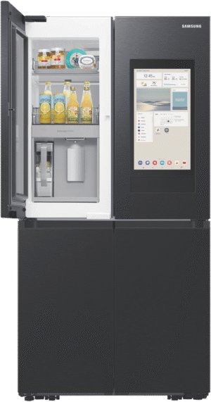 Introducing the sleek new Samsung 636L AI Family Hub Refrigerator with its ultra-spacious 636 litre capacity and industry-leading smart technology. This French door fridge boasts a stunning matte black finish that will add a touch of modern luxury to any kitchen. The generous 386 litre fridge capacity and 250 litre freezer capacity provide ample fresh food and frozen storage for the whole family’s needs. Samsung’s exclusive Family Hub feature allows you to control your fridge, stream music, watch videos, and much more, all via the built-in touchscreen. Key features include Triple Cooling + Metal Cooling for optimum temperature control, dual auto ice makers for endless chilled drinks, and big door bottle bins and veggie boxes for maximum convenience. Slide in shelves and the CoolSelect+ FlexZone provide the ultimate in organisation and flexibility. This fridge is also equipped with Samsung’s groundbreaking AI Vision Inside, which identifies foods and suggests recipes. With its spacious storage, smart capabilities, and sleek design, this AI Family Hub Refrigerator will be the stylish centrepiece of your kitchen. The manufacturer’s part number for this product is SRF9400BFH.