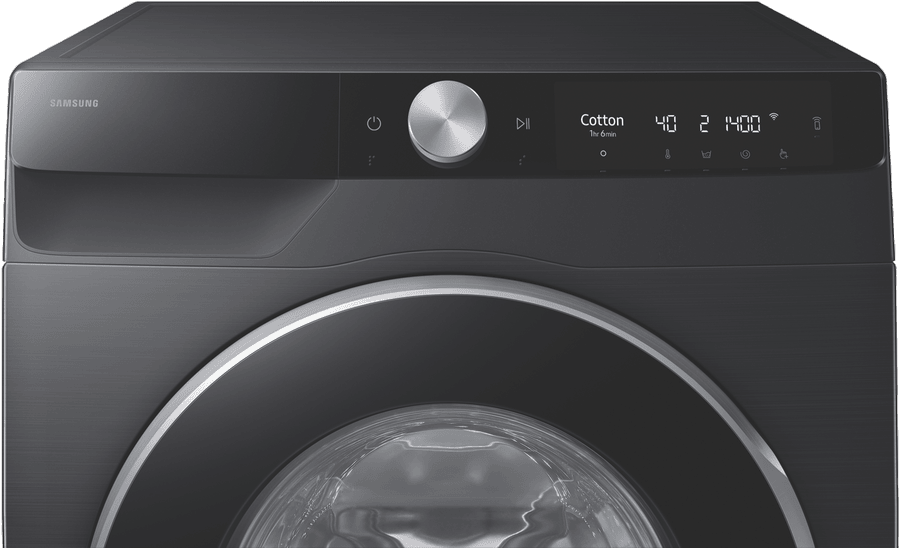 This Samsung 9kg Smart Front Load Washer handles all your family’s laundry needs with its generous capacity and smart features. The black finish adds a modern touch to your laundry space. With 14 different programs including Quick Wash 15′, you can tackle everything from delicates to towels. The Super Speed cycle gets loads done faster, while BubbleWash and BubbleSoak technology provide deeper cleaning. It’s smart home ready too – connect to the SmartThings app to control your washing from anywhere. The 5-star energy rating and 4-star water rating (using just 93L on the E Cotton cycle) help keep bills down. Includes a 2-year warranty. Model WW90DG6U34LB.