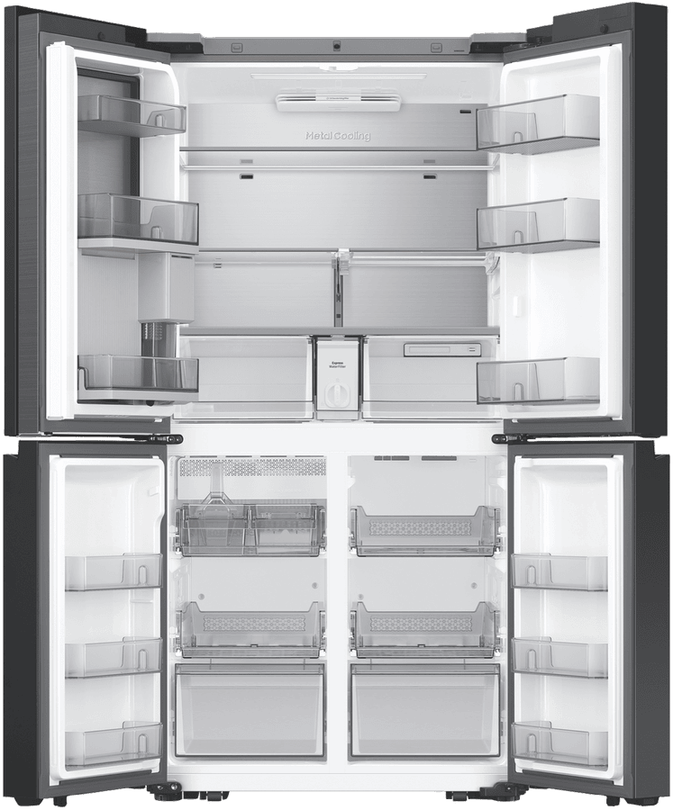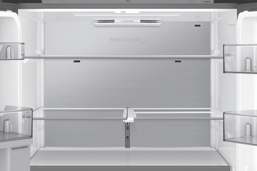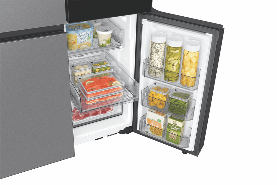 - Dual door, Cool Select+ Flex Zone, slide-in shelf, Family Hub