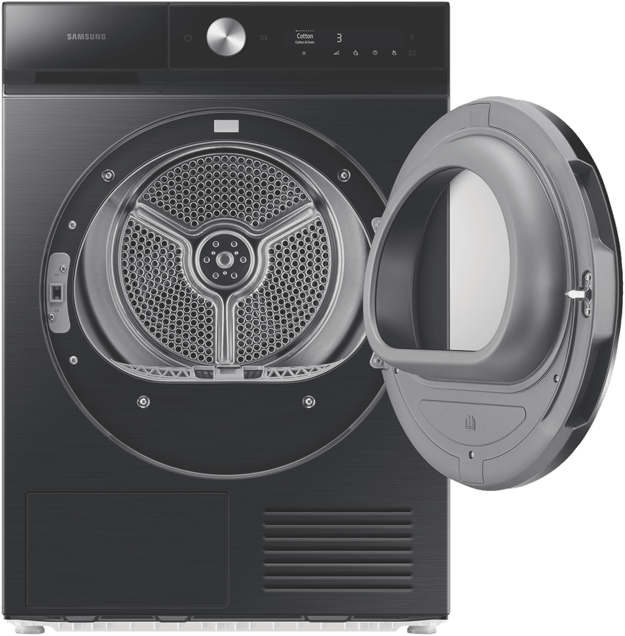 Revolutionize your laundry routine with the sophisticated new Samsung 9kg Bespoke Heat Pump Dryer. This innovative dryer boasts an impressive 9 star energy rating for ultra-efficient performance. The OptimalDry system utilizes AI technology to detect moisture levels and adjust drying time, preventing damage to fabrics. With a spacious 9kg drying capacity, this dryer can handle even the largest loads with ease. The customizable Bespoke design features a reversible door and over 18 specialized drying programs to cater to all your laundry needs. Additional highlights include a personalized AI setting, silent drying mode, a fast 35 minute cycle for small loads, and an included drying rack for delicates. Samsung’s intelligent sensor drying takes the guesswork out of laundry day. This large capacity dryer’s Bespoke styling allows you to coordinate your laundry room’s look seamlessly. Treat your wardrobe to the latest in fabric care technology with the Samsung 9kg Bespoke Heat Pump Dryer. The manufacturer’s part number for this product is DV90BB9440GB. Take your laundry routine to the next level with this innovative dryer.