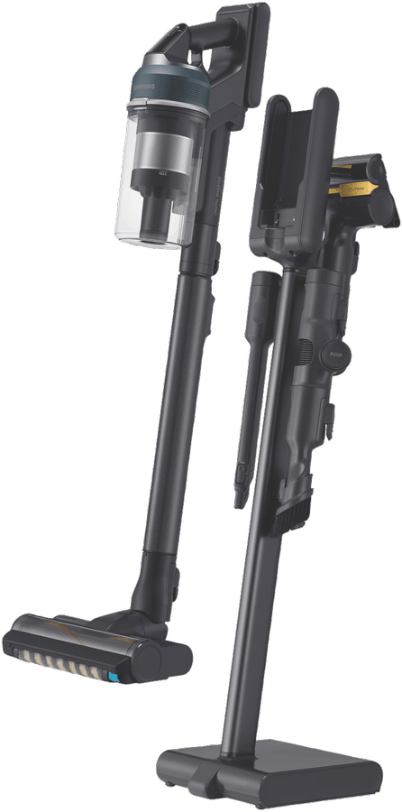 Step into a new era of cordless cleaning with the Samsung Jet 95 Complete Cordless Vacuum in Midnight Blue. This powerful stick vacuum packs a punch with 210W of suction power to lift dirt and debris from carpets and hard floors. The lightweight 2.51kg design and 60 minute runtime allow you to maneuver into hard-to-reach areas and clean your entire home in one go. The Jet Dual Brush effortlessly glides from hard floors to carpets, while the Slim LED Brush illuminates hidden dust in hard-to-see areas. Tackle pet hair with the specialized Pet Tool + for furniture, stairs and upholstery. Extend your reach with the Combination Tool, Extension Crevice Tool and Flexible Tool to clean ceilings, blinds, drapes and more. With a generous 0.8L dust bin capacity and washable filters, you can clean longer before stopping to empty. Recharge fully in just 210 minutes and be cleaning again in no time. This vacuum comes complete with the Z Station for tidying up cords and conveniently storing your tools. Backed by a 2 year manufacturer’s warranty, the Samsung Jet 95 Cordless Vacuum provides the freedom to clean your whole home without cords getting in the way. The manufacturer’s part number for this product is VS20C9544TB. Bring home this powerful, lightweight cleaning companion today. Disclaimers: (1)Based on internal testing, in accordance with the IEC 62885-4 CL.5.8 standard. Measured at the inlet of the non-accessorized tool, using Jet Mode and a battery that is fully charged. Results may vary depending on actual usage.(2)The stated run time applies when using a high capacity battery (2000mA) and the minimum power level with a non motorized tool attached. Results may vary depending on actual usage.