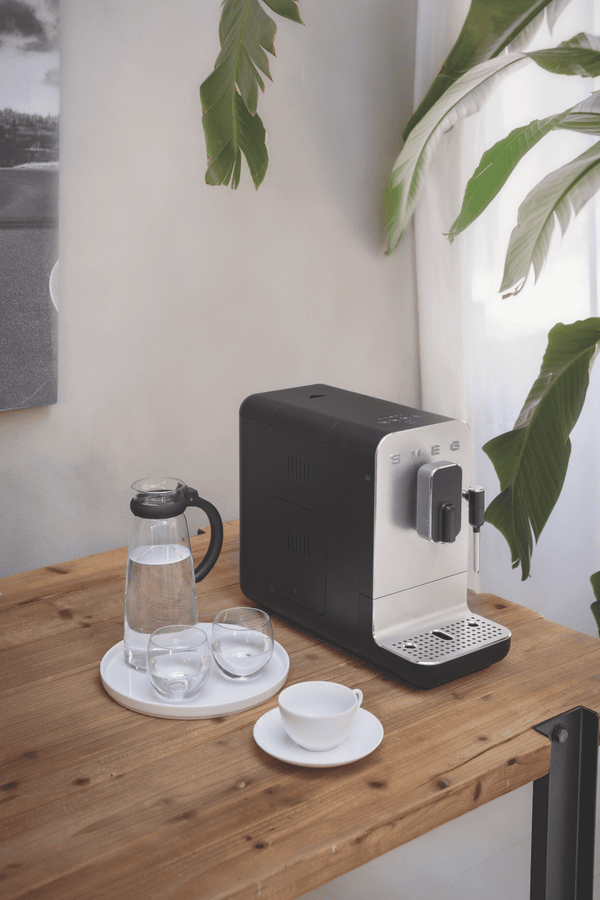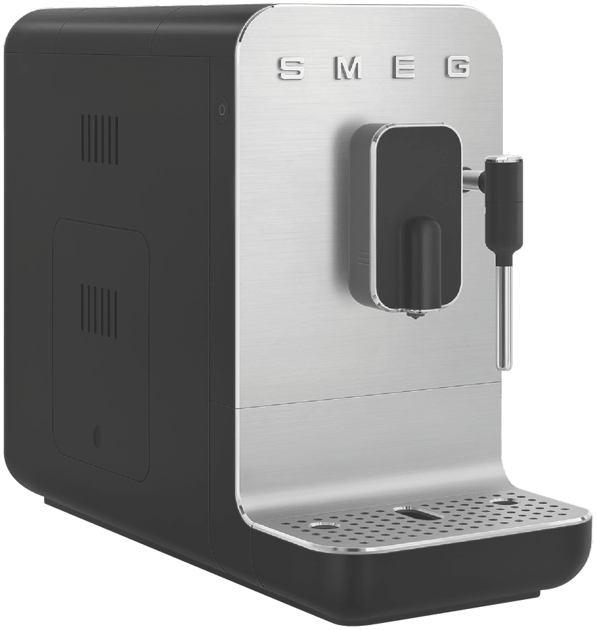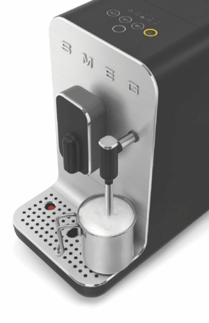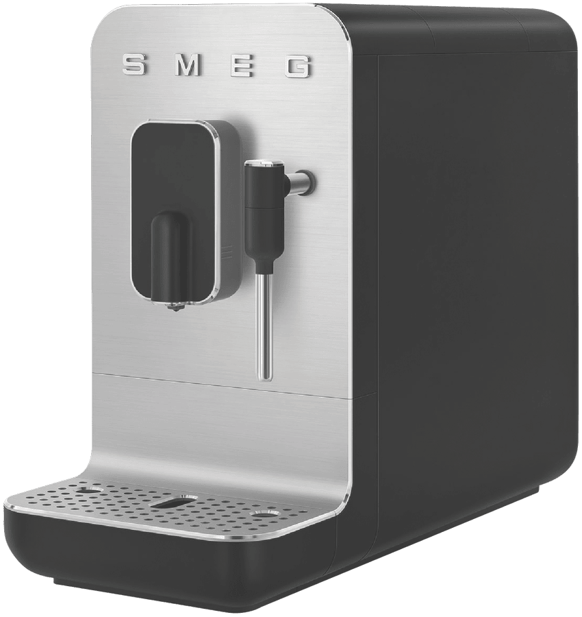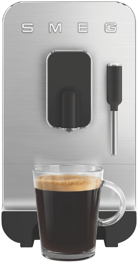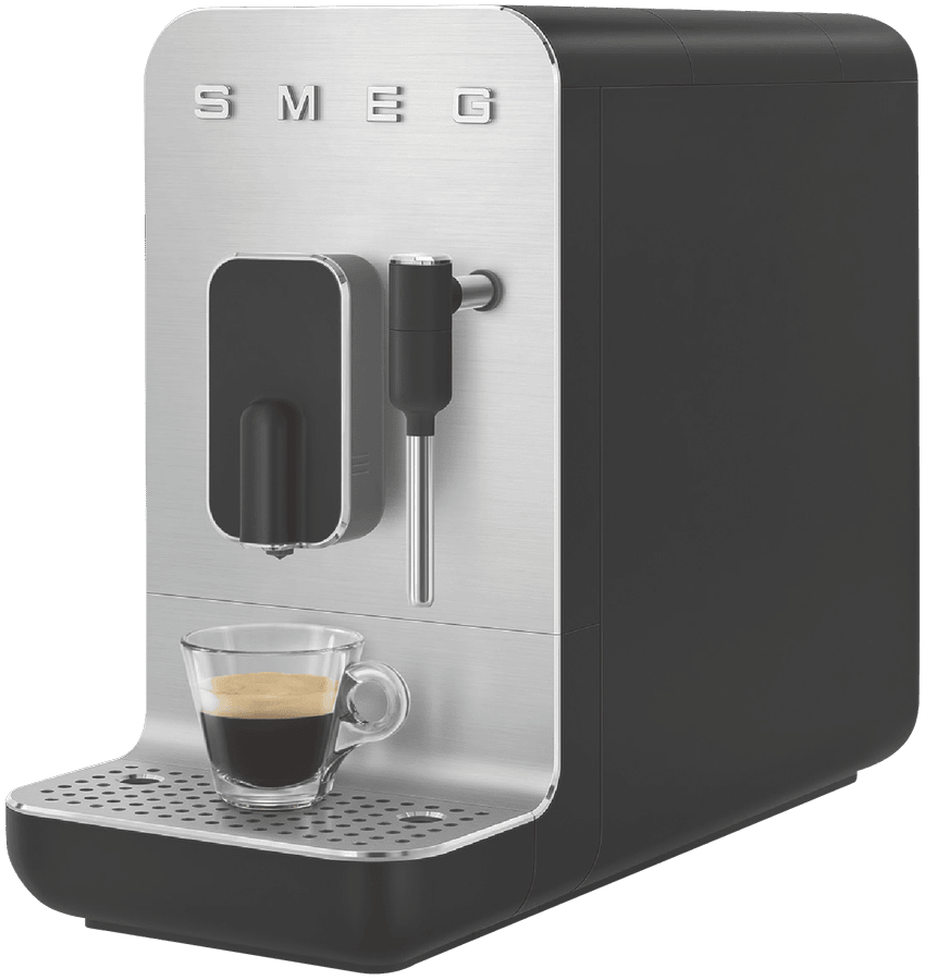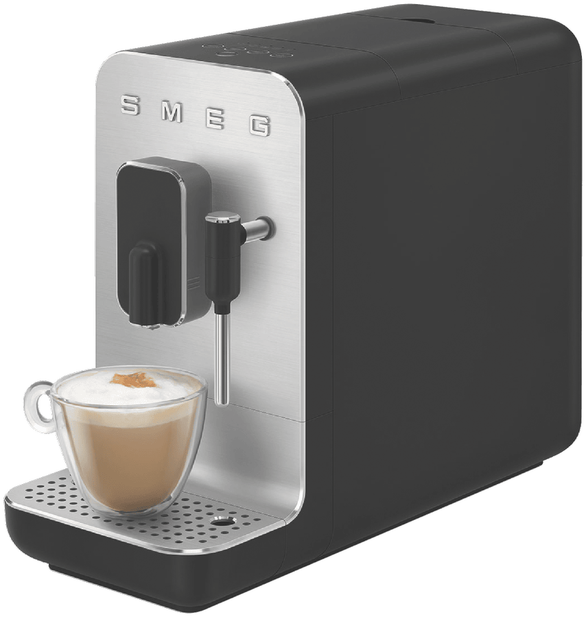 Elevate your coffee game with the sleek and stylish Smeg Bean To Cup Coffee Machine. This automatic coffee machine boasts a brushed aluminium front panel in a sophisticated matte black finish. With a powerful 1350-watt motor and 19 bar pump pressure, you can enjoy barista-quality coffee at home. The built-in grinder ensures the freshest brew, while the 1.4L water tank provides plenty of capacity for multiple cups. Want to add a creamy touch? The integrated milk frother lets you craft lattes and cappuccinos with ease. Customize your coffee just the way you like it with adjustable settings for coffee length, dispenser height, and water. Cleaning is a breeze with the included cleaning brush and steam wand cleaning needle. Measuring 433mm high, 336mm deep, and 180mm wide, this 8.4kg machine will be a standout addition to your kitchen. Enjoy peace of mind with a 2-year manufacturer’s warranty. Experience the convenience and quality of the Smeg BCC12BLMAU Bean To Cup Coffee Machine.