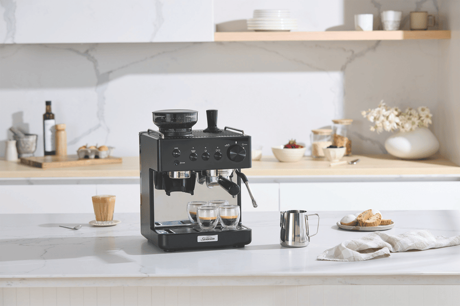 Make barista coffee at home with this Origins Classic Espresso Coffee Machine. The powerful 15 bar pump pressure extracts rich, full-bodied espresso, while the built-in conical burr grinder ensures your beans are freshly ground for maximum flavour. You can create silky, café-quality milk with the powerful steam wand, perfect for lattes and cappuccinos. The generous 1.8L water tank and 220g bean capacity means you won’t need frequent refills, and the thermoblock heating system delivers consistent temperature for optimal extraction. Enjoy convenient features like auto dosing and simple knob and push button controls. 1 Year Warranty. Model EMM5500BK.