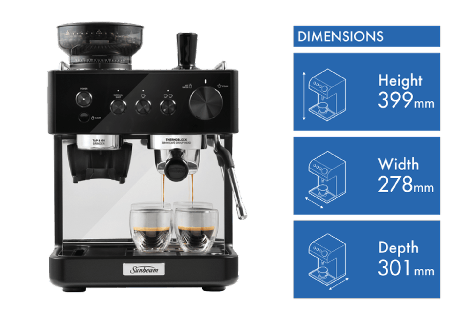 - Thermoblock heating, Auto Dose tap and go grinder