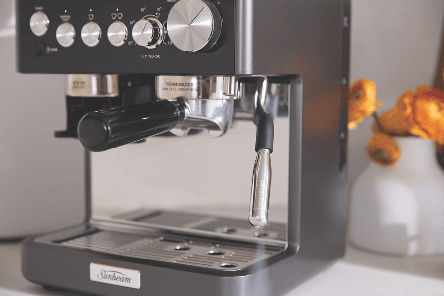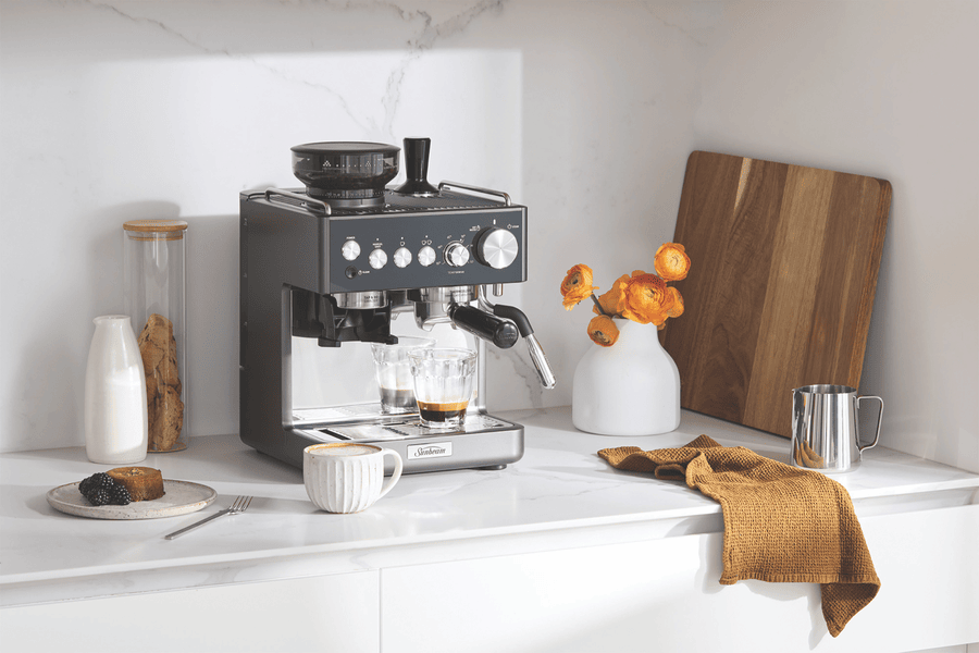 Make barista-quality coffee at home with the Origins Sense Espresso Coffee Machine in sleek graphite. This manual machine packs a powerful 15 bar pump and built-in grinder with 30 adjustable settings, giving you complete control over your brew strength. The generous 1.8L water tank and 220g bean capacity means fewer refills when serving multiple cups. For milk lovers, the versatile frother offers four temperature settings plus manual steam options to create everything from silky flat whites to frothy cappuccinos. Comes with a 1-year manufacturer’s warranty. Model EMM6500GR.