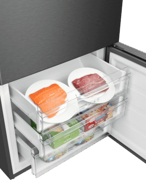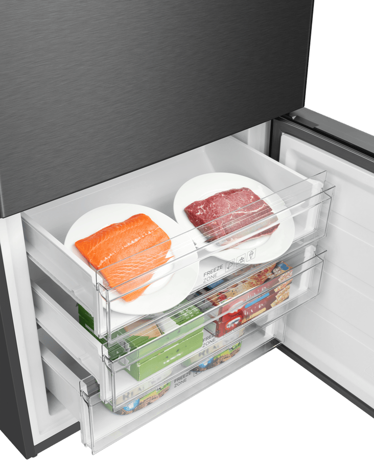 Tired of icy surprises in your freezer? TCL’s Total No Frost keeps the temperature consistent throughout, preserving food quality and eliminating the need for manual defrosting—saving you time, effort, and your favourite ice cream. Power Freeze rapidly lowers the temperature to preserve the quality of meat and fish. By speeding up the freezing process, it helps retain nutrients, reduces moisture loss, and minimises bacterial growth for safer, longer-lasting freshness.