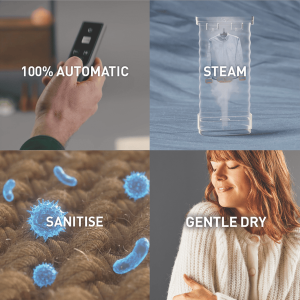 - Automatic dewrinkling up to 3 items at a time with straightening clips