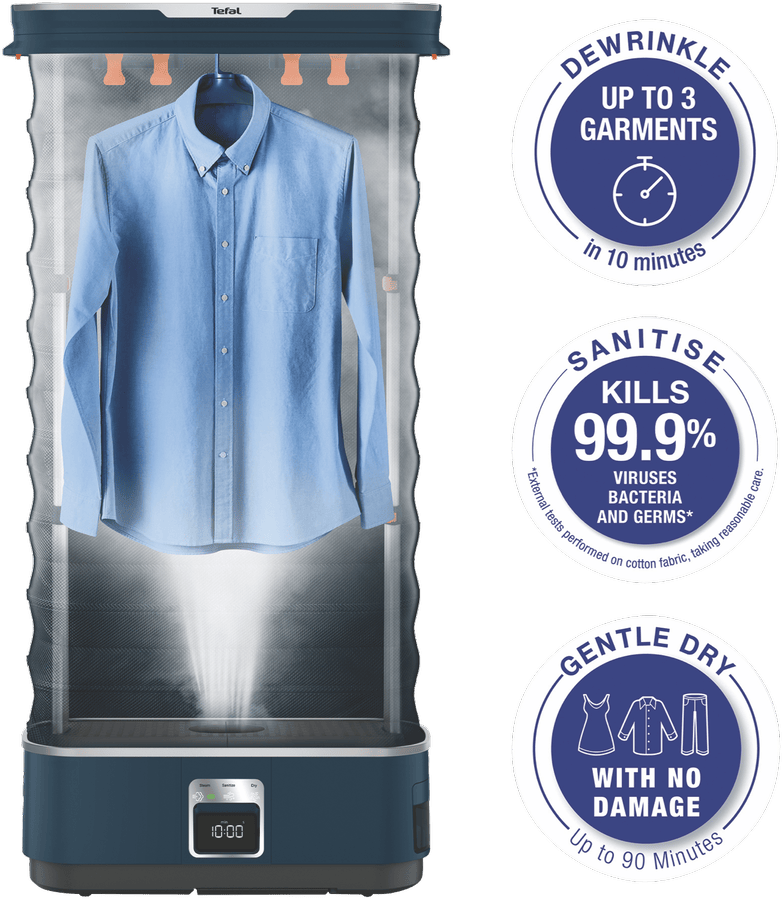 - Insert up to 3 items of clothing for fast dewrinkling in just 10 minutes