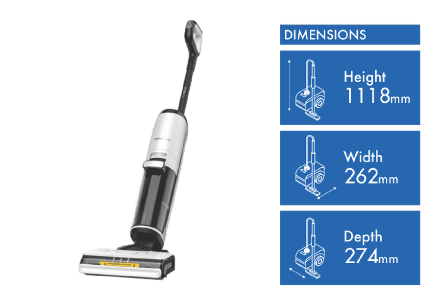 Make quick work of dirty floors with the Tineco One S7 Steam Hard Floor Cleaner. This cordless cleaner tackles messes with its unique MHCBS technology that constantly cleans the brush as you go, meaning less maintenance for you. The quick-drying feature leaves no streaks behind, so you can walk on your floors almost immediately. Helpful voice prompts guide you through cleaning tasks, making this machine super easy to use. Weighing just 6.14kg and measuring 262mm wide by 274mm deep and 1118mm high, it’s easy to maneuver around your home. The white and black design looks sleek in any space. Comes complete with two rollers, two dry filters, cleaning tool, adaptor and charging base, all backed by a 2-year warranty. Model number: SW110500AU.