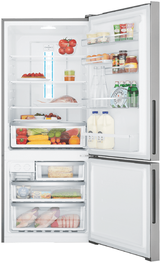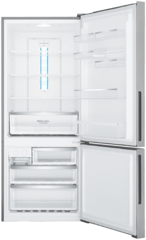 Bring home the stylish and spacious Westinghouse 425L Bottom Mount Refrigerator to keep your food fresh for longer. With its bottom freezer configuration, this fridge offers ample storage for all your chilled and frozen essentials. The generous 425 litre total capacity includes a sizeable 300 litre fridge compartment and a 125 litre freezer, providing the flexibility to store everything from produce to party platters. Adjustable glass shelving, a crisper drawer and door storage make it easy to organize the interior to suit your needs. Features like the FlexStor door storage system, SpillSafe shelves, a twist ice dispenser and LED lighting ensure this refrigerator offers convenience along with capacity. The multi-flow air delivery system maintains optimal temperature control and quick chill functionality enables rapid cooling when required. Finished in an elegant Arctic Silver, this refrigerator will complement your kitchen beautifully while providing the storage and performance you need. The manufacturer’s part number for this product is WBE4302AC-R. Discover how this quality Westinghouse refrigerator can upgrade your household food storage today.