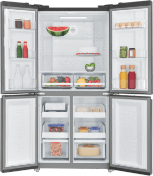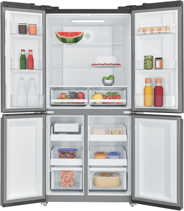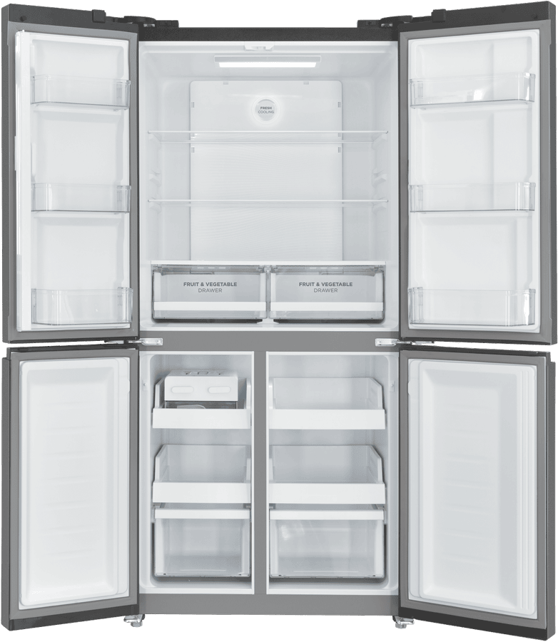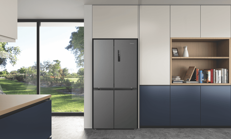 This Westinghouse Quad Door Refrigerator gives you generous 496L capacity with smart storage options for the whole family. The matte black finish adds a sleek touch to any kitchen while fitting neatly into an 1800mm high cavity. Inside, you’ll find 310L of fridge space with adjustable easy-clean glass shelves and full width fruit and vegetable drawers to keep produce organized. The freezer section offers 186L capacity with five half-width drawers for efficient storage. The handy Twist & Serve icemaker with moveable bin means fresh ice whenever you need it. With its deodoriser keeping things fresh and 4 Star energy rating helping reduce power bills, this fridge combines practicality with efficiency. The inverter compressor provides reliable, quiet operation, all backed by a 2 year manufacturer’s warranty. Model WQE4900BA.
