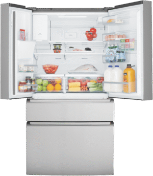 Bring gourmet style and modern convenience into your kitchen with the Westinghouse 609L French Door Refrigerator (WHE6170SB). This spacious stainless steel fridge makes entertaining easy with its dual freezer storage, filtered ice and water dispenser, and FlexSpace fully convertible drawer that transforms from produce to deli to beverage storage with just a quick slide. The French door design provides wide open access to fresh food storage, while the SmartSplit door allows you to open just one side to grab a quick snack. Inside, keep fruits and veggies crisp in the FreshSeal easy glide crispers and organize leftovers and drinks using the slide back and flip up shelves. With a generous 609L total capacity, dual cooling to maintain ideal humidity, and a stylish silver finish, this Westinghouse refrigerator handles all your refrigeration needs in style. It even features a convenient SnackZone for quick grab-and-go access to your favorite foods and beverages. Bring home refreshingly chilled groceries and perfectly frozen foods with the Westinghouse 609L French Door Fridge today. The manufacturer’s part number for this product is WHE6170SB.