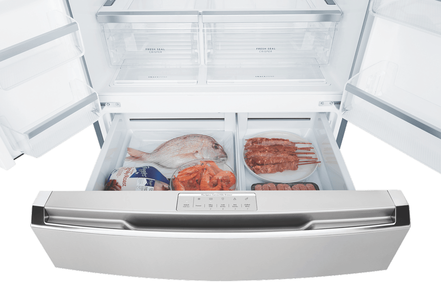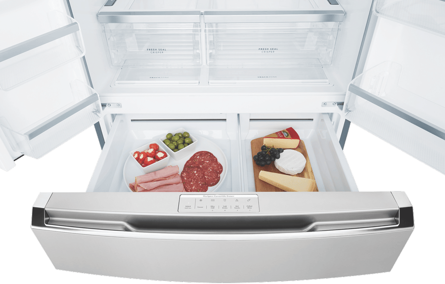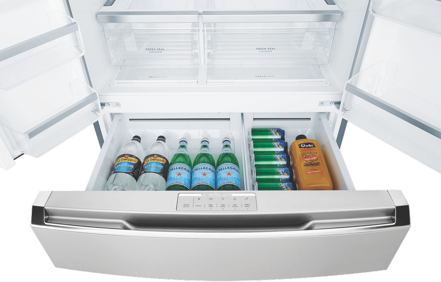 - SmartSplit doors, FlexSpace convertible drawer, dual cooling