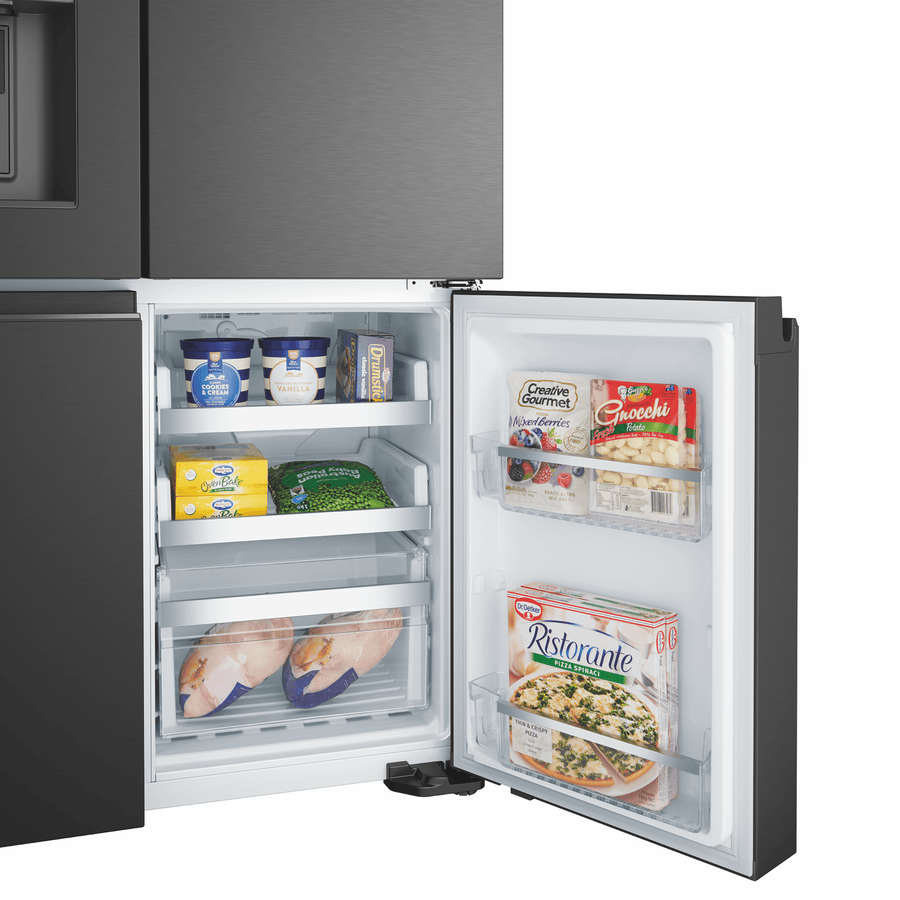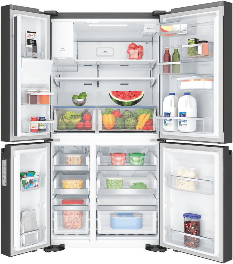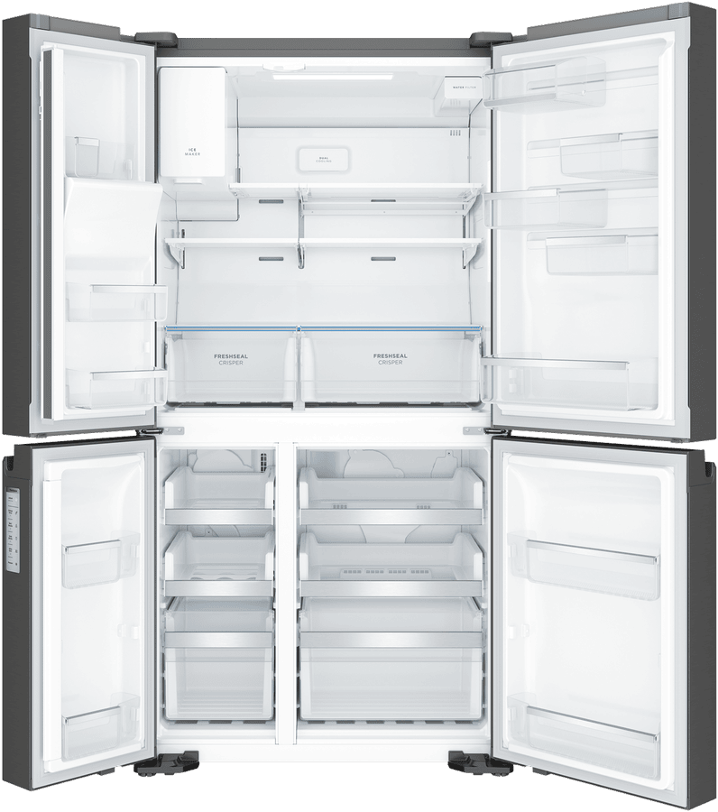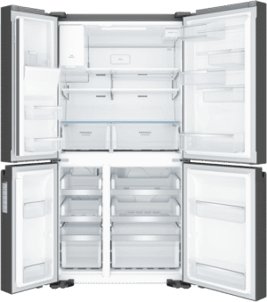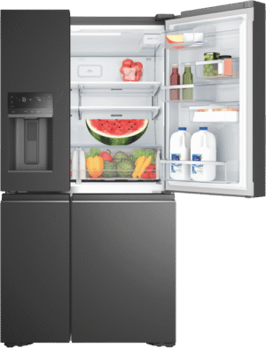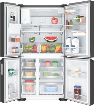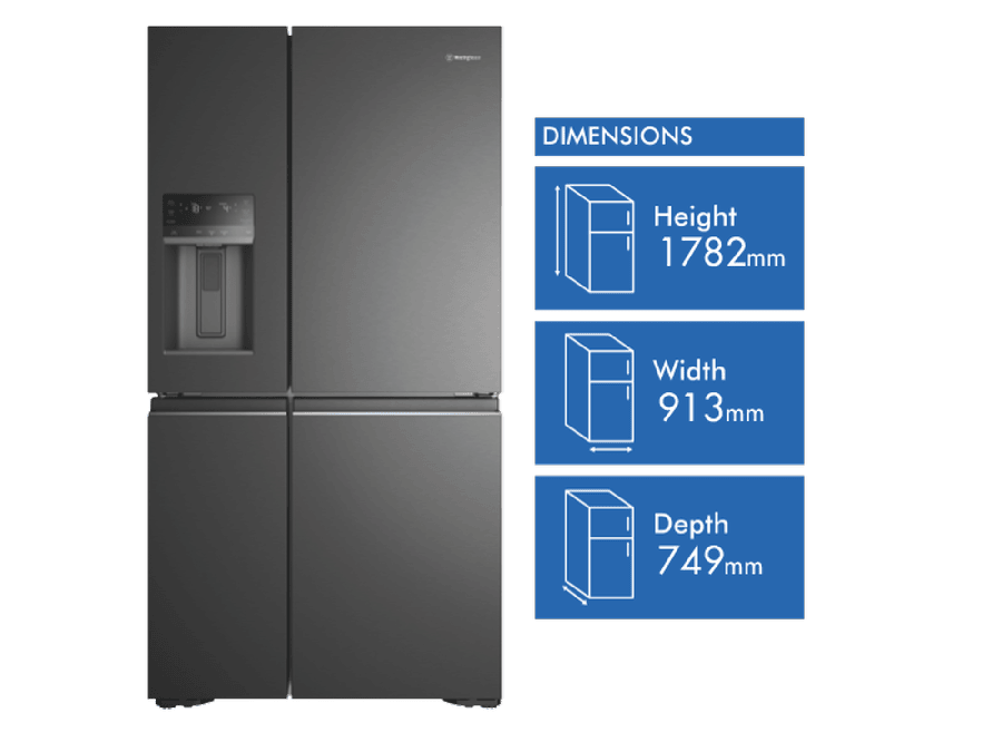 Step up your refrigeration game with the sleek, spacious Westinghouse 609L Quad Door Refrigerator. This French door fridge boasts a stylish matte black finish that will complement any modern kitchen. With a generous 609L total capacity, including a roomy 371L fridge space, this Westinghouse quad door fridge provides ample storage for the weekly shop. The integrated ice and water dispenser delivers refreshing chilled water and ice on demand. FlexSpace technology enables you to convert one of the fridge compartments into a freezer, bottle chiller or deli zone with just the touch of a button. FreshSeal humidity control crispers help keep fruit and veg fresher for longer. The SnackZone provides easy access for kids to grab a yoghurt or drink. Westinghouse backs this fridge with a 2 year warranty for peace of mind. The manufacturer’s part number for this product is WQE6170BB. Discover how a Westinghouse quad door refrigerator can revolutionize your kitchen.