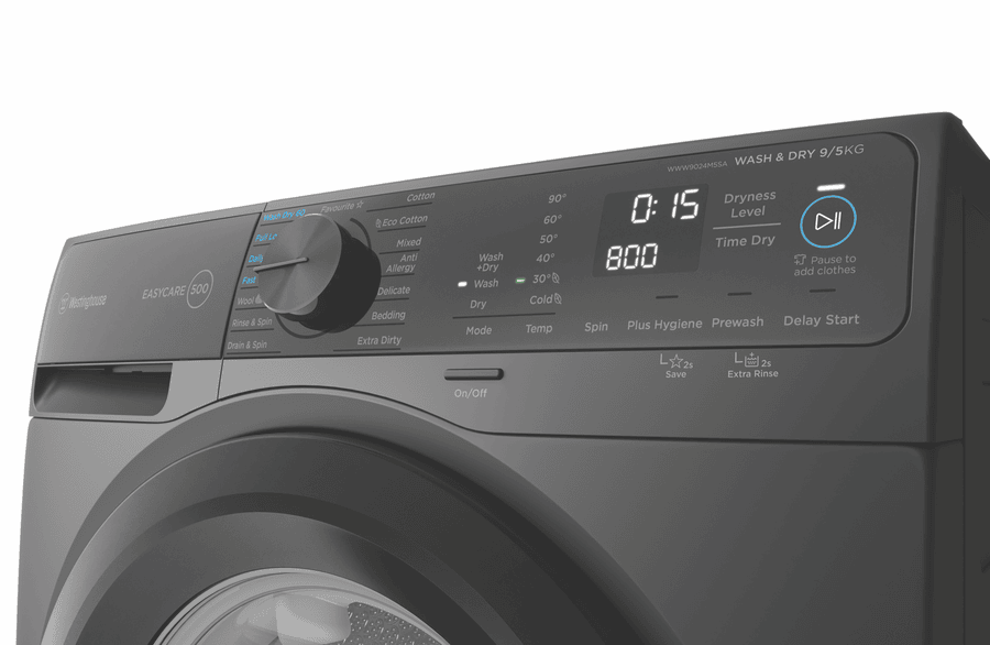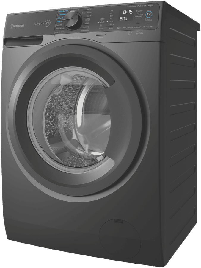 Discover the ultimate laundry solution with the Westinghouse 9kg-5kg Combo Washer Dryer. This innovative appliance seamlessly combines washing and drying capabilities, making laundry day a breeze. With a generous 9kg washing capacity and 5kg drying capacity, this combo washer dryer is perfect for households of all sizes. The sleek grey finish adds a touch of sophistication to any laundry room. Enjoy a wide range of 15 washing programs, including delicate, mixed, fast 15, daily 39, full load 60, extra dirty, bedding, and gym wear, catering to all your laundry needs. The washer dryer also offers convenient options like rinse hold, extra rinse, plus hygiene, delay end, spin selection, wash temperatures, and variable spin speeds up to 1200rpm. The inverter motor ensures quiet and efficient operation, while the 3XL drum opening allows for easy loading and unloading. Save your favorite programs for quick access, and take advantage of the pause and add button for added flexibility. With a 4-star WELS water rating and 5-star wash energy rating, this combo washer dryer is both water and energy efficient. The manufacturer’s part number for this product is WWW9024M5SA. Experience the convenience and performance of the Westinghouse EasyCare combo washer dryer in your home today.